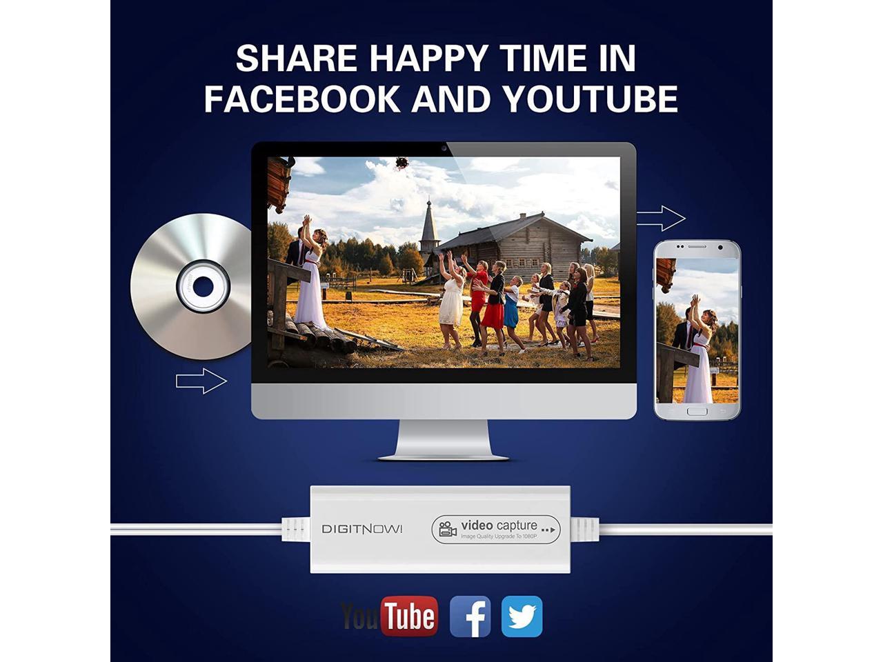 DIGITNOW USB 2.0 Video Capture Card- Pro+ Version VHS to Digital Converter 1080P 30Hz , Suitable for Mac OS, iPad, Android, WinXP/7/8/10