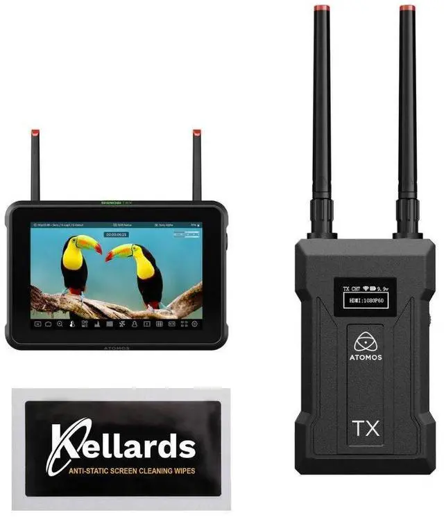 Add a bright, high-resolution on-camera monitor to your live production kit for your focus puller, director, or camera assistant with the Shinobi 7 RX HDMI/SDI HDR On-Camera Monitor/Wireless Receiver from Atomos. This 7" high-bright HDR monitor provides the ability to view 4K footage remotely via Wi-Fi while also providing remote focus and camera control in an Atomos TX/RX environment or via wired USB/serial. The Shinobi 7 RX features a 7" IPS LCD 1920 x 1080 screen that is illuminated by a bright 2200 cd/m² LED backlight, making it possible to view in daylight without requiring a hood. Plus, the screen is also color calibrated from the factory to ensure accurate image representation. Bundle with Atomos Shinobi 7 RX HDMI/SDI HDR Monitor, Atomos TX 4K/HD Wireless Video Transmitter and Anti-Static Screen Cleaning Wipes (5-Pack).
