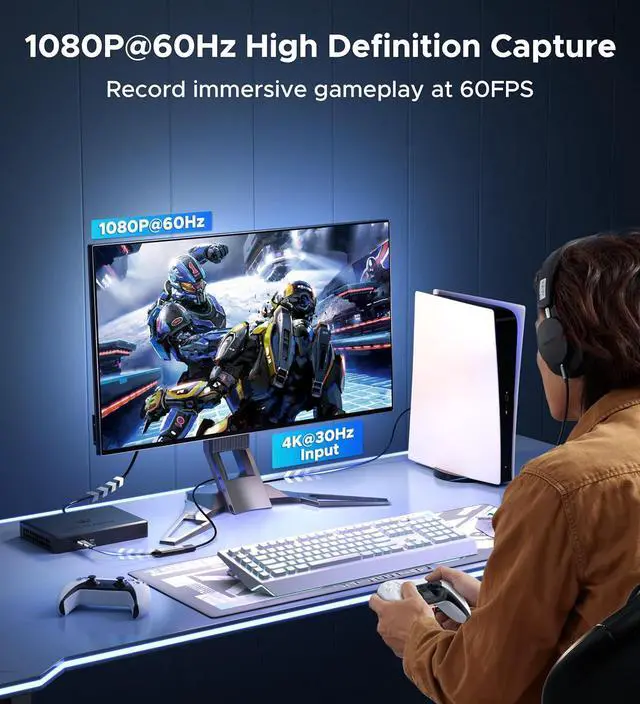1080P@60FPS Video Capture CardPowered by a USB 3.0 interface with 5Gbps bandwidth, this HDMI capture card handles up to 4K@30FPS input and delivers a smooth 1080P@60FPS capture resolution. The advanced YUY2 video format ensures sharp, detailed imagery and vivid colors, letting you effortlessly capture every seamless, high-octane gaming moment and record stunning high-definition videos.