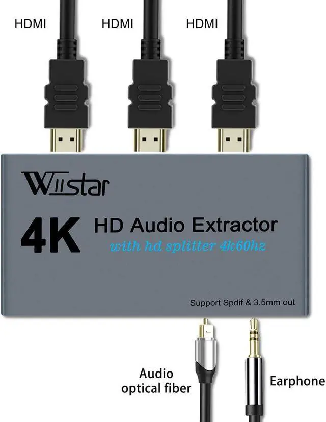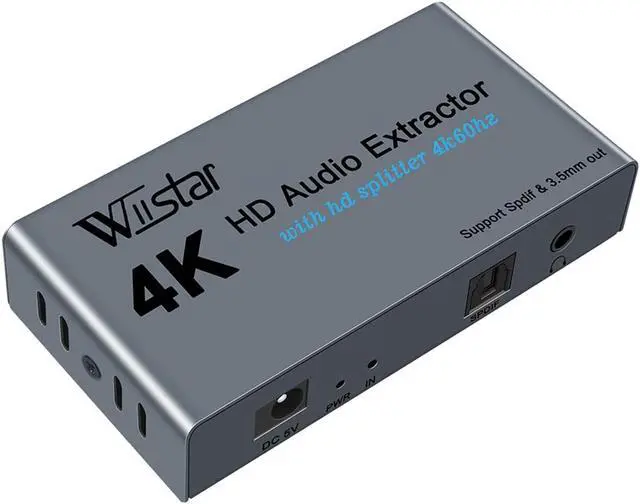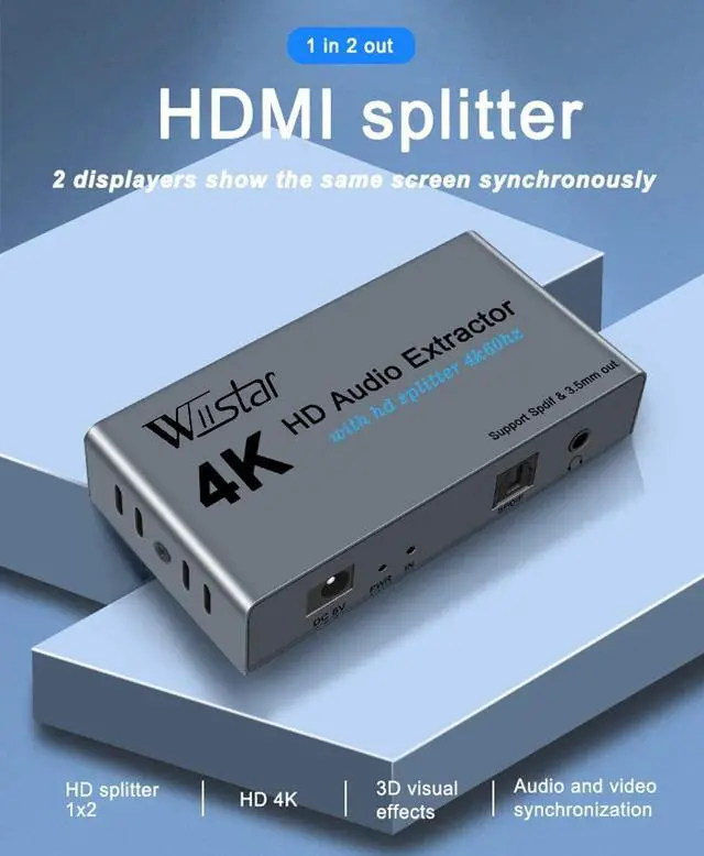 Wiistar 4K HDMI Audio Extractor with 4K60hz HDMI Splitter 1 in 2 Out Spdif/Toslink/Optical 3.5mm Jack Audio Out Signal Distributor Converter for PS4 Xbox One DVD Blu-ray Player HD TV Projector