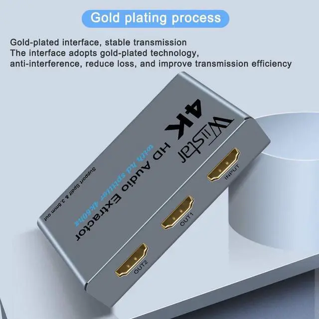• ? HDMI Audio Extractor? This HDMI Switch support 1 HDMI Input to 2 HDMI Output ,meanwhile extract/split audio from HDMI IN,output it via optical Spdif toslink or 3.5mm jack to external stereo/surround sound system. Supports HDMI source devices without dedicated audio output
