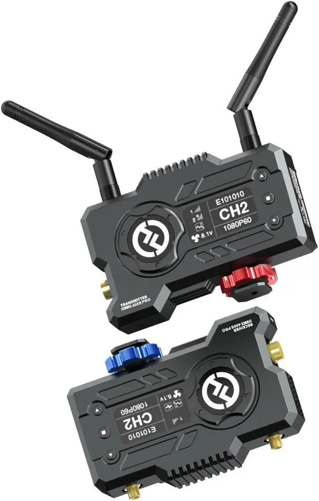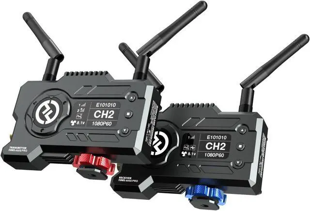 1080p60 wireless video transmission to your gimbal, mirrorless, or DSLR camera rig using the lightweight Mars 400S PRO SDI/HDMI Wireless Video Transmission System from Hollyland. The transmitter provides HDMI and SDI inputs and the receiver offers SDI and HDMI outputs. It features extremely low 0.08 s latency with line-of-sight transmission up to 400' to the receiver and up to 300' to the Hollyview Wi-Fi app. For a strong line-of-sight signal, the system includes two external antennas on the transmitter and two on the receiver, and one is included as a spare.