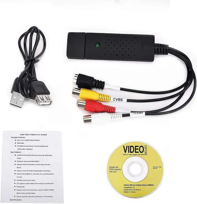 Transfer/Capture Video and Audio from Almost Any Analog Video Source (VHS/VCR/Hi8/DVD/TV BOX) to Your Windows PC. USB Video Capture Adapter provides a link between a PC and a video device with RCA connector or S-Video connector, such VHS, VCR, DVD. Handles NTSC, SECAM, PAL and PAL/60 video and audio. Convert LP and Audio Cassettes to CD or MP3 Format. Product informationPackage Dimensions 7.1 x 6.3 x 1.2 inchesItem Weight 3.98 ouncesASINB08C9T5M37Customer Reviews 3.8 out of 5 stars201 ratings 3.8 out of 5 starsBest Sellers Rank#34 in Video ConvertersDate First AvailableJuly 3, 2020ManufacturerTCRAYCH