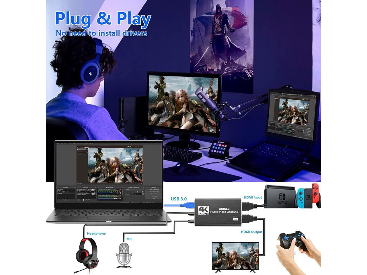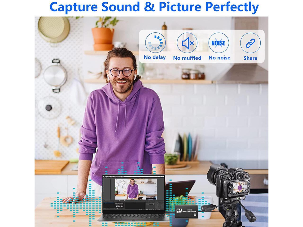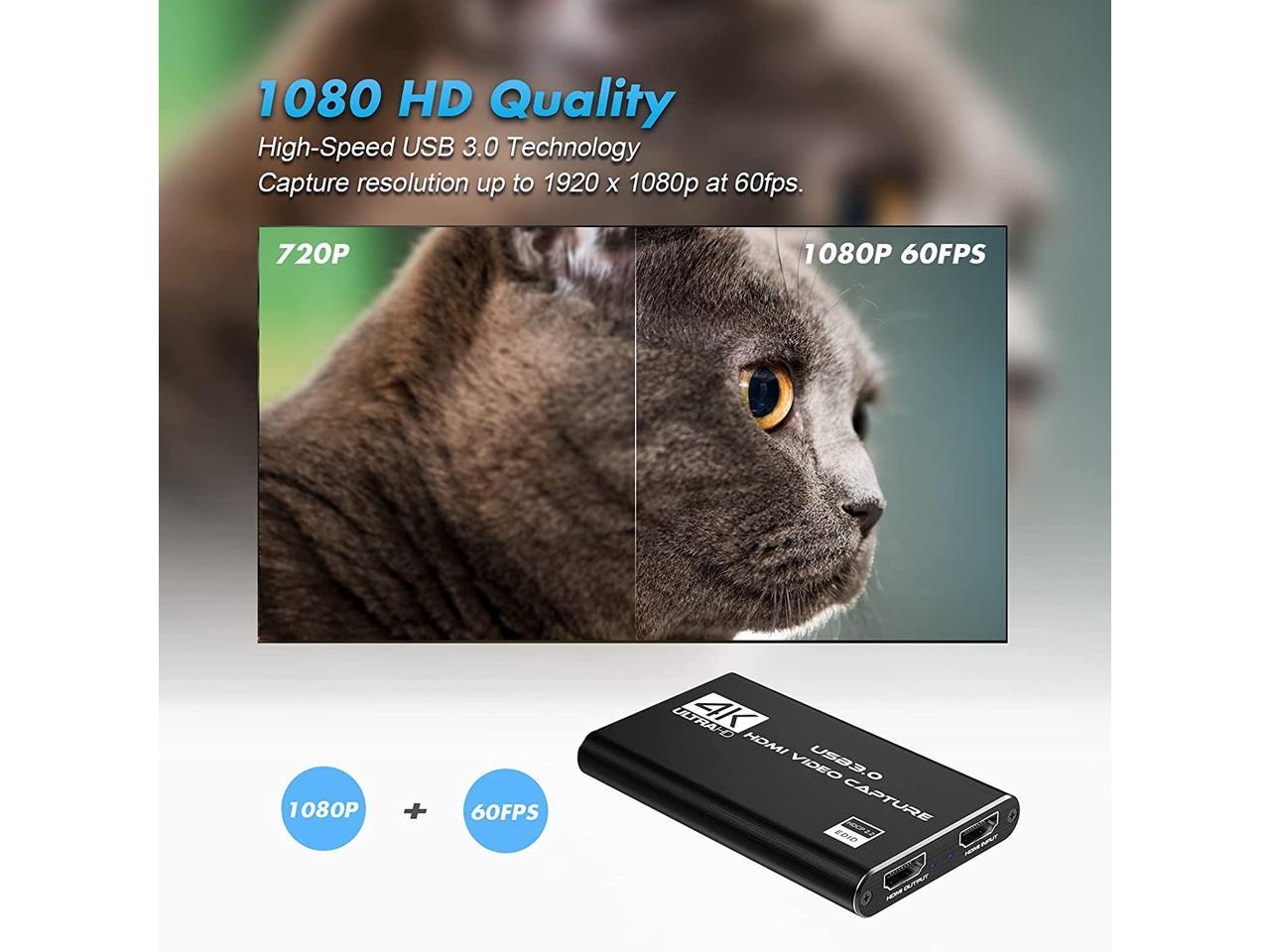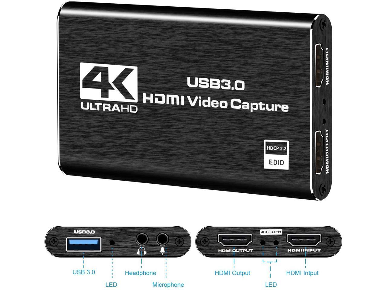 4K Audio Video Capture Card, USB 3.0 HDMI Video Capture Device, Full HD 1080P for Game Recording, Live Streaming Broadcasting