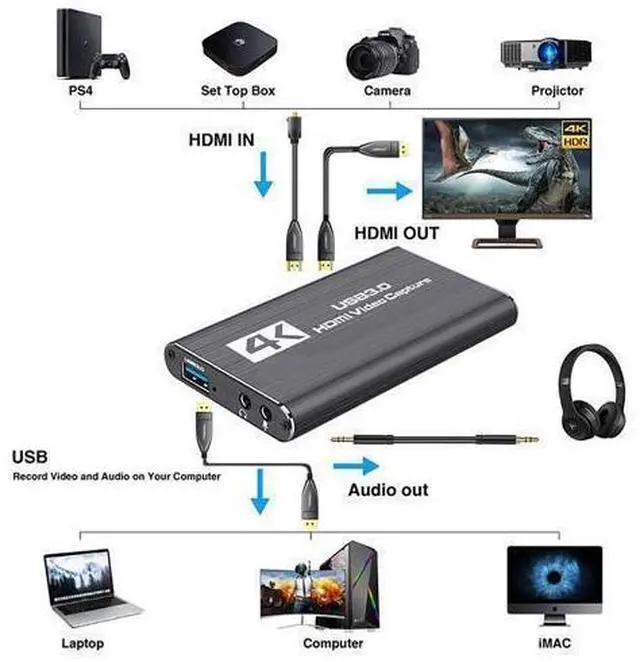 HD High Quality: Capture resolution up to 1080p for video source and it is ideal for all HDMI devices such as PS4, PS3, Xbox One, Xbox 360, Wii U, Nintendo Switch, DVDs, DSLR, Camera, Security Camera and set top box.