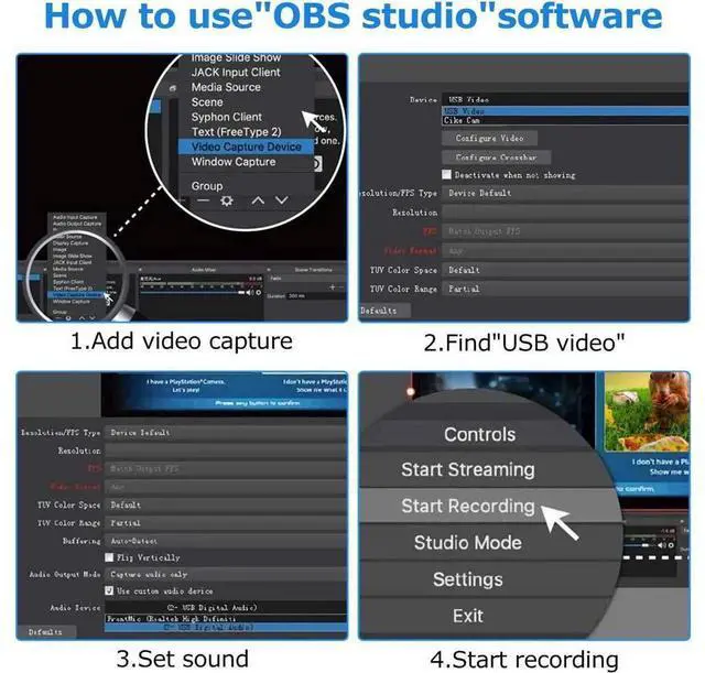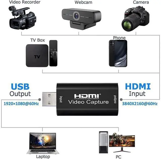 The Audio Capture Card is up to 4K@60HZ High Definition Input, Output max resolution 1920×1080@60Hz. Record videos directly to the hard disk without time delay. HDMI Video Capture is suitable for devices with HDMI output, such as PS4 and Switch etc. USB capture card supports 1080P 60fps High Quality Recording and live steaming also. *