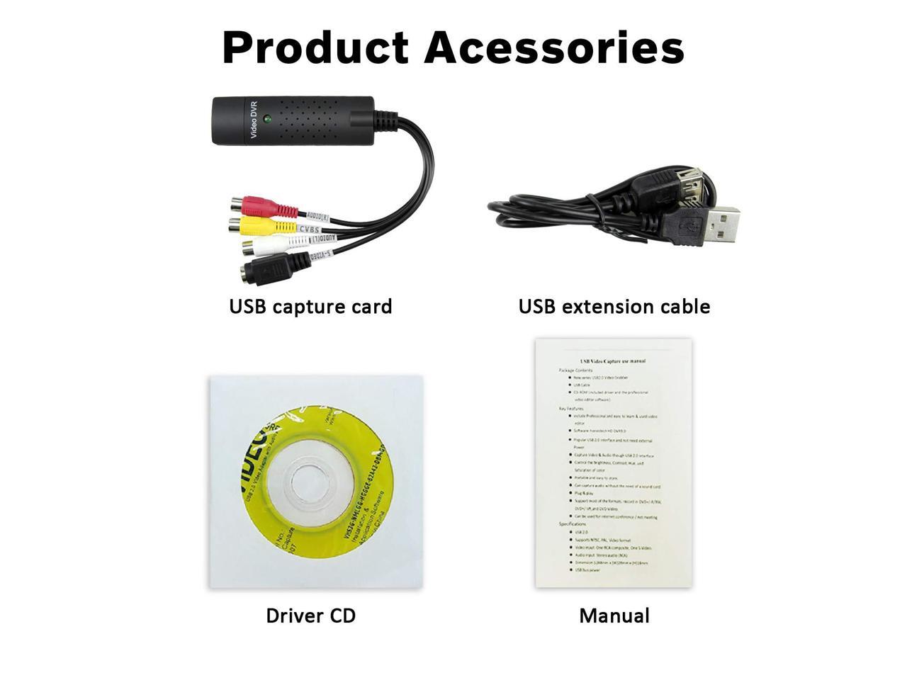 - Easy Operation:USB 2.0 interface, plug and play. Connect the analog signal video recorder with your PC/Laptop and Achieve the conversion to digital signal Capture High-quality Video & Audio through popular USB 2.0 interface and not need external power.