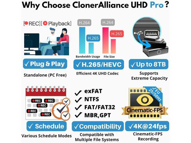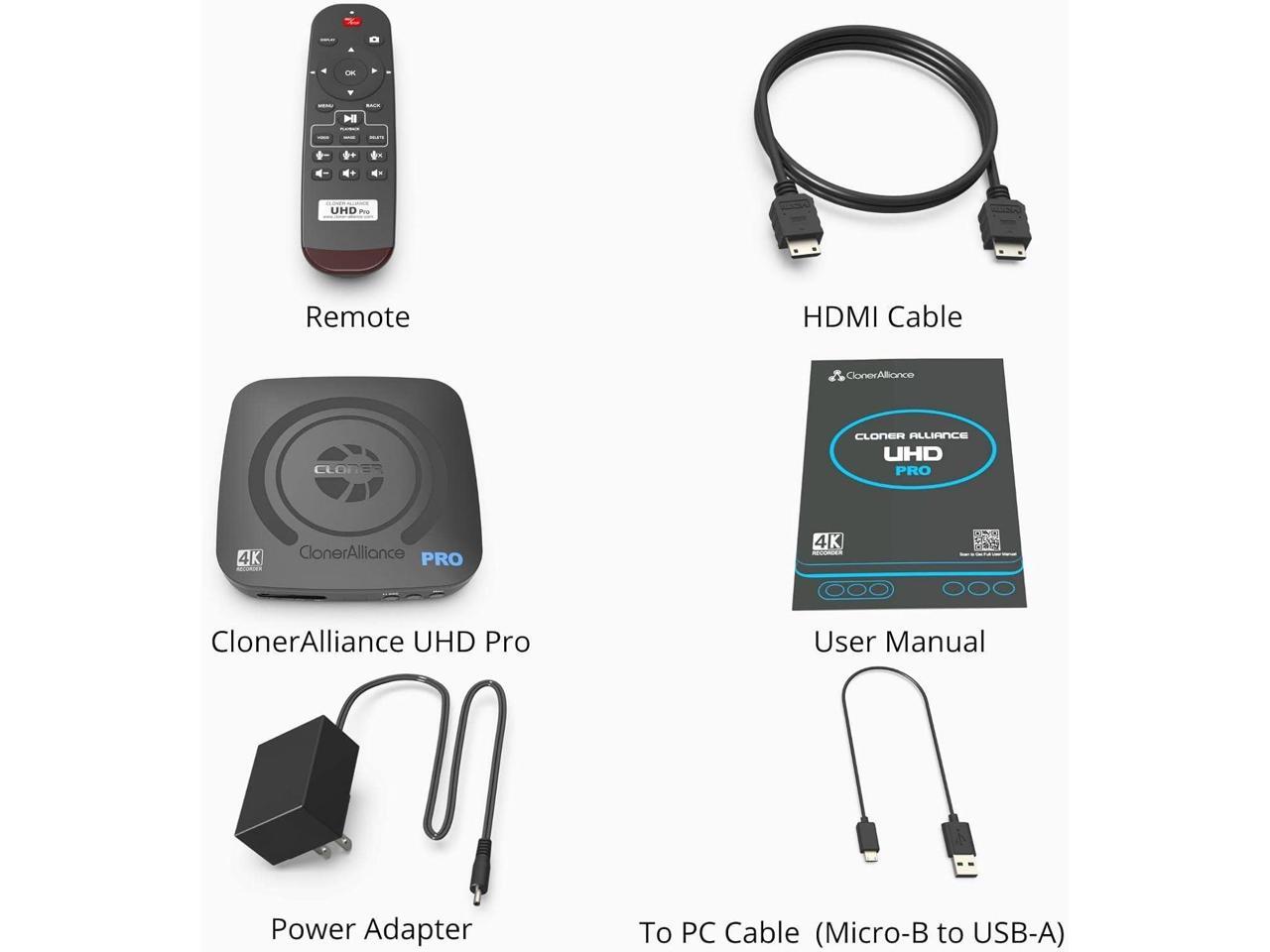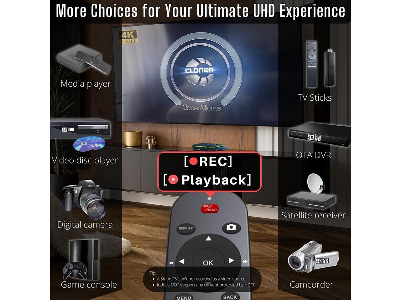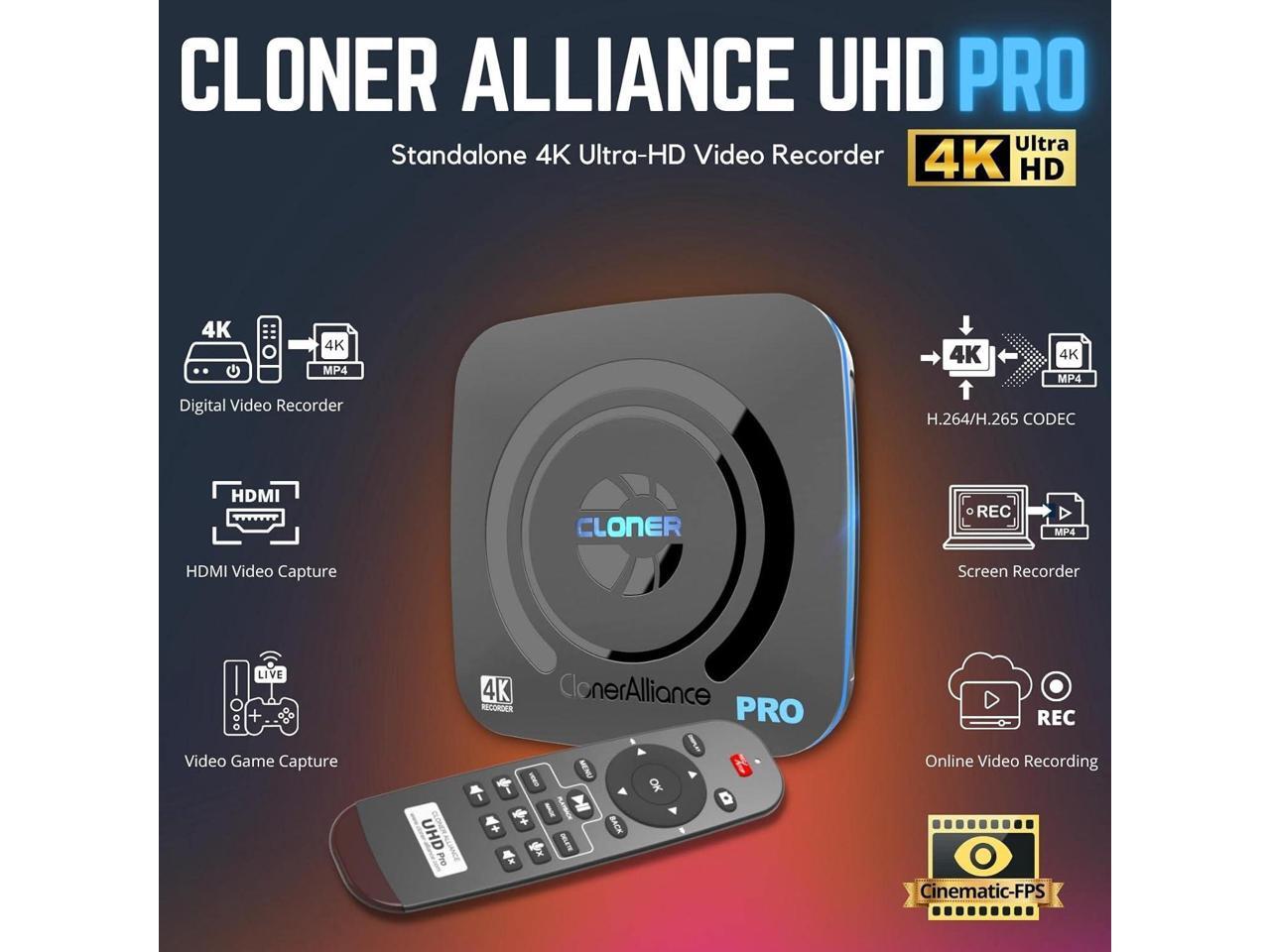 ClonerAlliance UHD Pro, 4K Video Recorder, HDMI Capture DVR with H.265/H.264 Codec, Cinematic 4K@24fps Recording(Up to 4K@30fps), No PC Required.