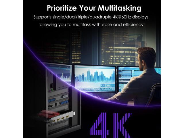 - Multiple Display Configurations-Supports a variety of display configurations with single, dual, triple, and quadruple 4K displays at 60Hz. Whether you need to mirror displays for presentations or extend your desktop for multitasking, this card has you covered.