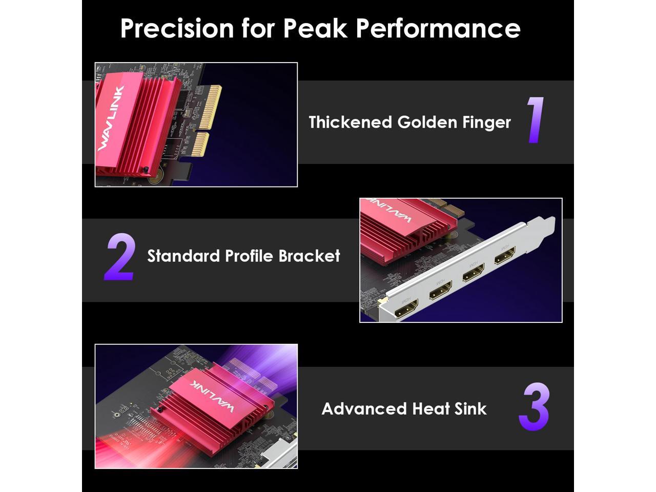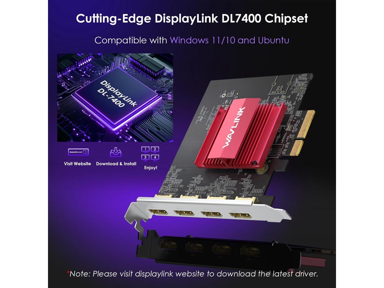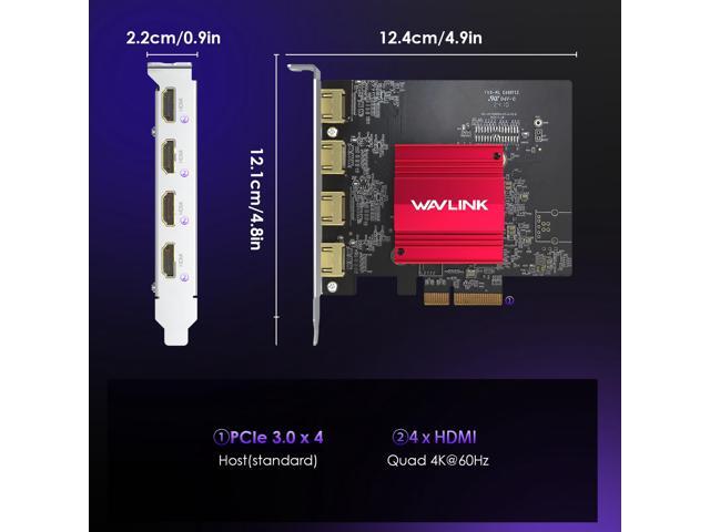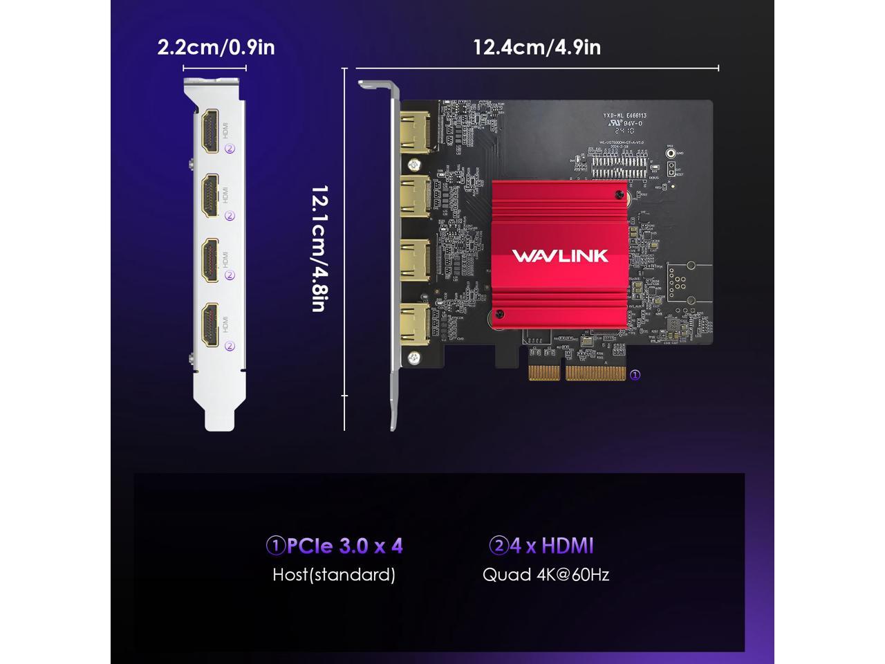 WAVLINK PCIe 3.0 to Quad 4K@60Hz HDMI Graphics Card - Global Debut with DisplayLink DL7400, 4 HDMI Ports, PC Video Card with Standard Profile, Supports Multiple Monitors for Windows 11/10 & Ubuntu