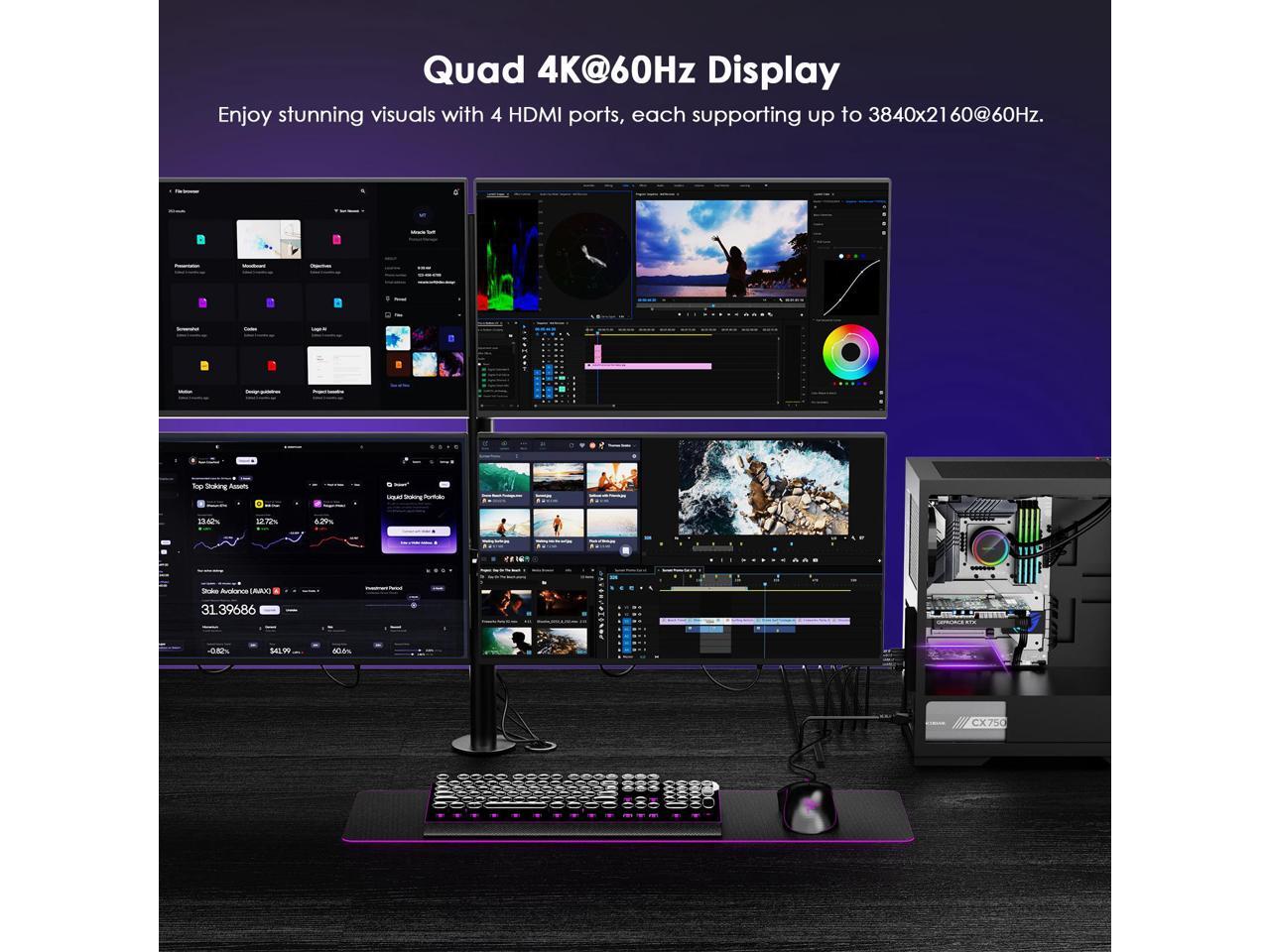 - Quad 4K@60Hz Display- Enjoy stunning visuals with four HDMI ports, each supporting up to 4K (3840x2160) @60Hz resolution. Perfect for multi-monitor setups, whether for work or entertainment. Supports both mirror and extend display modes
