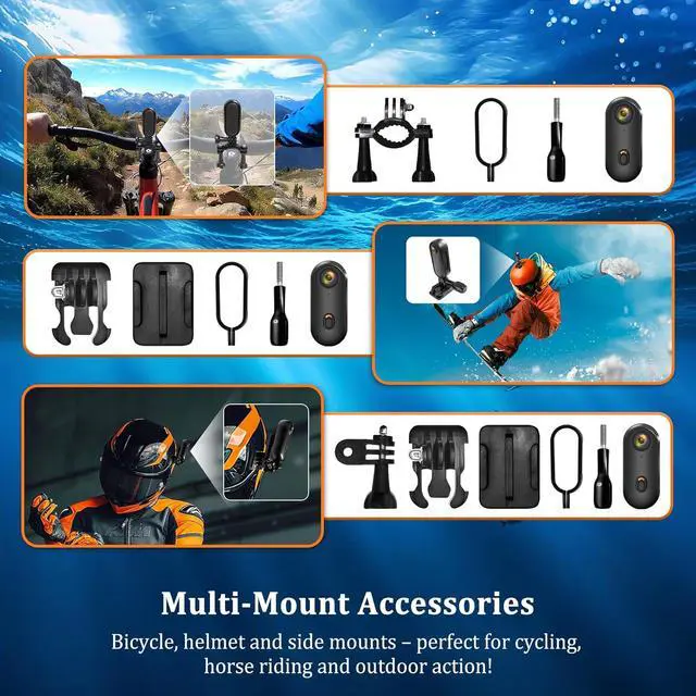 Note: 1. This 4K action camera features a shockproof design and anti-shake for daily activitiesideal for cycling, jogging, hiking, and horseback riding, ensuring smooth footage during these routine scenarios. 2. Two versions are available: the standard version includes only the camera and its original accessories (no memory card included), while the other version comes with an extra 64GB memory card. Please note the distinction between the two versions. 3. Temporarily disable VPN for 1-2min WiFi pairing; re-enable afterward. Technical compatibility onlyno data collection.