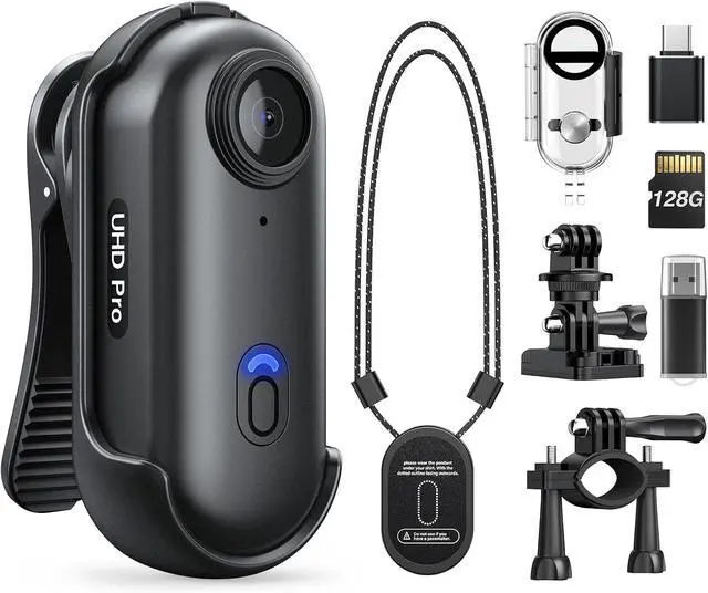 Z10 2K Action Camera, 64GB Wearable Sports Camera with Waterproof Case, Magnetic Clip, and Quick-Mount Accessories, Small Body Cam for Cycling, Diving and Outdoor Adventures (WT64GB) BL128GB