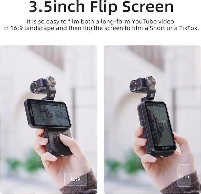 3. 3.5" Flip Screen for 16:9 & 9:16, one- touch face tracking.