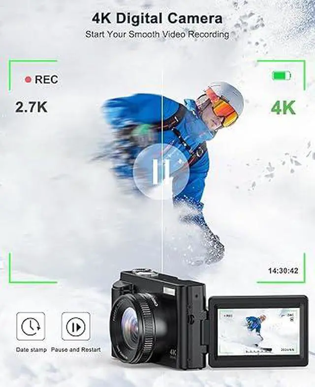 [PERFECT GIFT FOR SHARING FUN] Fashion point and shoot digital camera for beginners and teens is full-featured and easy to use! The 4K photography camera makes everyone use it easily in home life, social software, travel, or festivals! Also, This compact camera is the perfect gift for yourself, lovers, friends, children, or parents for Valentine's Day, Thanksgiving, Christmas, and birthday day! Come and start your innovation!