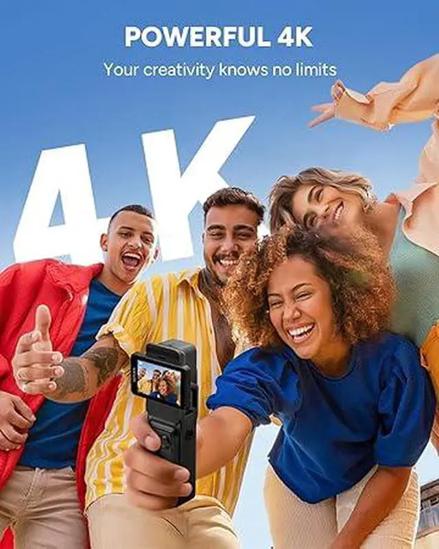 Vlogging Camera for Youtue:4KCinematic Picture Quality: the C400 Vlog cam Delivers incredibly realistic 4K Ultra HD resolution. Every detail is exquisitely rendered. A 154° distortion-free wide-angle lens provides an immersive, expansive view, allowing you to easily capture magnificent landscapes. The f/2.0 large aperture significantly improves low-light performance, creating a captivating shallow depth of field effect. The C400 is not just a First-Person View (POV) camera but also becomes your capable handheld companion for daily vlog creation