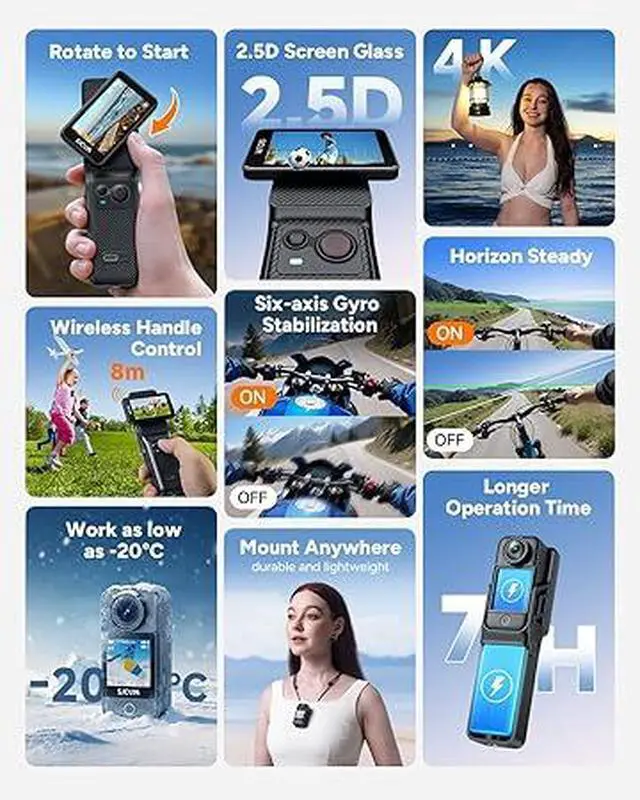 Blazing Fast 5G WiFi: Features an ultra-high-speed 5G WiFi module, allowing for lightning-fast transfer of large amounts of high-definition photos and 4K videos. Through our intuitive and easy-to-use dedicated App, you can achieve remote control shooting, precise parameter settings, real-time footage preview, live sharing, and switch between various shooting modes, including loop recording, time-lapse, pre-recording, slow motion, and more.