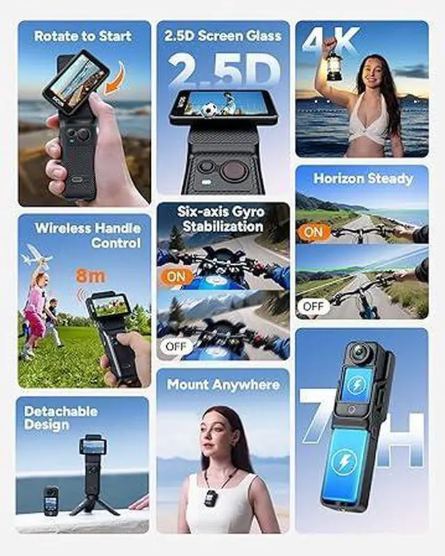 6-Axis Advanced Image Stabilization System: Equipped with 6-axis Electronic Image Stabilization (EIS) and horizon correction, ensuring smooth and clear videos even during action shots or in shaky environments. Offers multiple shooting modes: loop recording, slow-motion video, time-lapse photography, burst shooting, and timed shooting