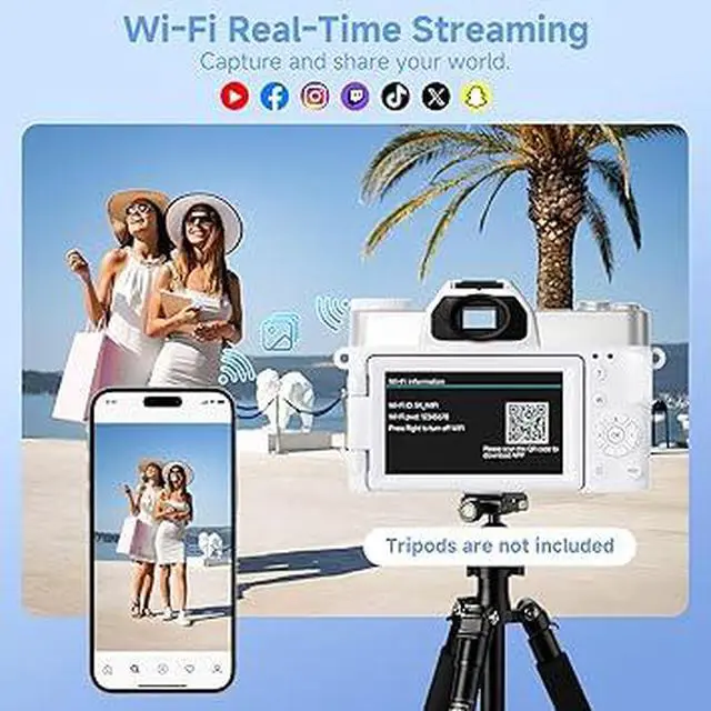 WiFi Transfer & Webcam: With built-in high-speed WiFi connectivity, this portable camera lets you instantly share adorable pet moments, unforgettable parties, exciting concerts, thrilling games, and scenic travel adventures anytime, anywhere. The compact digital camera also works as a versatile HD webcam, allowing you to livestream smoothly on TikTok, Facebook, YouTube, and other popular social media platforms with ease.