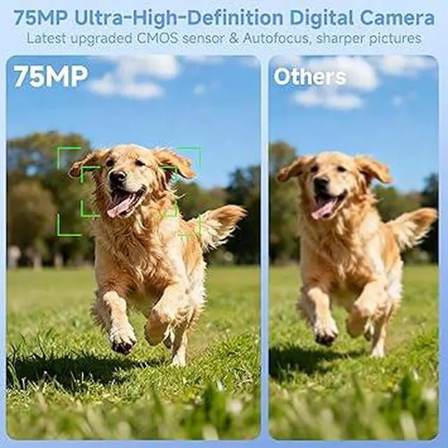 75MP & Autofocus Digital Camera: This isn't just a video cameraits an upgraded model that lets you snap stunning 75MP high-resolution photos. The SMARTKLIK photo camera features fast, reliable autofocus to reduce blur and help you capture every beautiful moment with ease. Whether youre a seasoned photographer or just starting out, this point and shoot camera makes it simple to get consistently great shots.