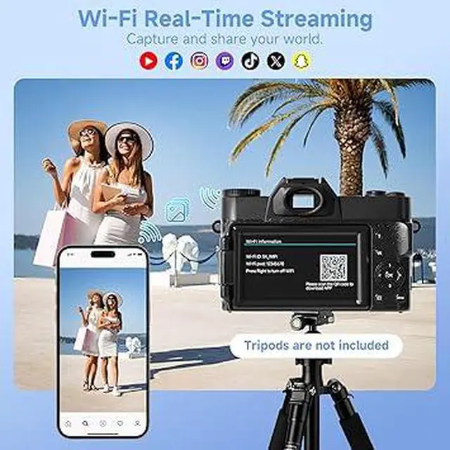 WiFi Transfer & Webcam: With built-in high-speed WiFi connectivity, this portable camera lets you instantly share adorable pet moments, unforgettable parties, exciting concerts, thrilling games, and scenic travel adventures anytime, anywhere. The compact digital camera also works as a versatile HD webcam, allowing you to livestream smoothly on TikTok, Facebook, YouTube, and other popular social media platforms with ease.