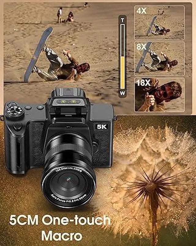 True 5K Digital Camera - 80MP Cameras for Photography - WiFi Vlogging Camera for YouTube with 4.0" Touch Screen, 18X Zoom - UHD Autofocus One-Touch Macro Video Camara Gifts for Beginner Photographer
