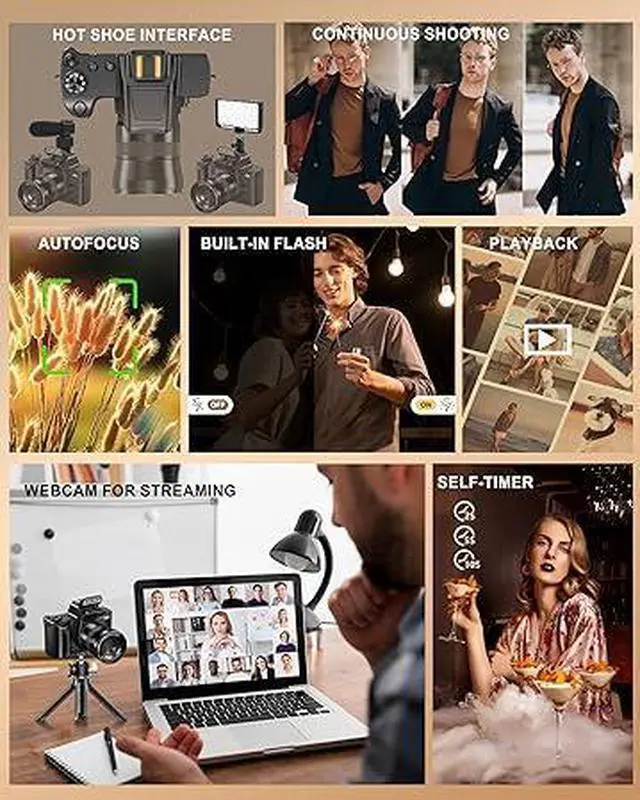 Please Pay Attention - 1.This is a regular Camera suitable for beginners, teenagers, and non-professionals with lower needs. It is not suitable for professionals who have high demands for photography, such as requiring the same image and video quality as professional cameras. 2. External devices such as microphones or lighting accessories require their own power source; the camera does not supply power to these accessories.