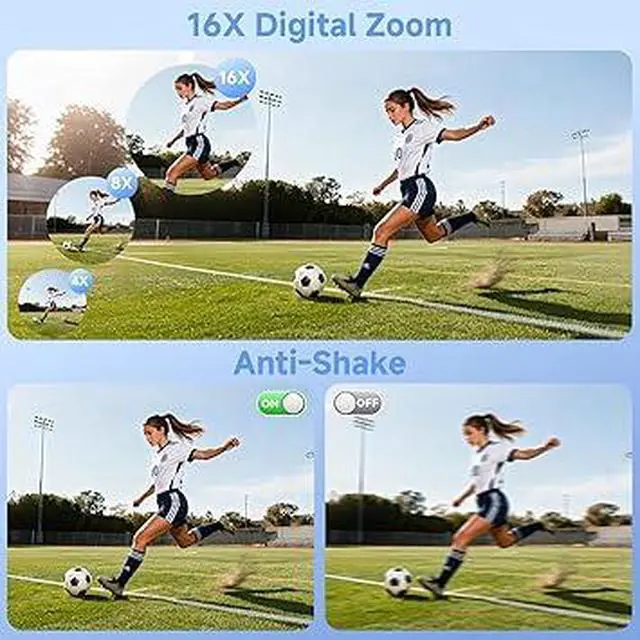16X Digital Zoom & Anti-Shake: With the easy-to-use W/T button, you can smoothly zoom in or out to capture concerts, music festivals, distant landscapes, wildlife, skiing action, sunsets, and so much more. This small digital camera makes it simple to get close to the moment, and its built-in anti-shake technology helps keep your photos steady, sharp, and beautifully cleareven when youre on the move.