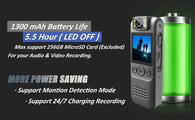 Equipped with a 1080P Full HD camera and a powerful LED flashlight, it captures clear footage in multiple lighting environments.The camera includes two interchangeable clips standard and screw type for flexible mounting options.