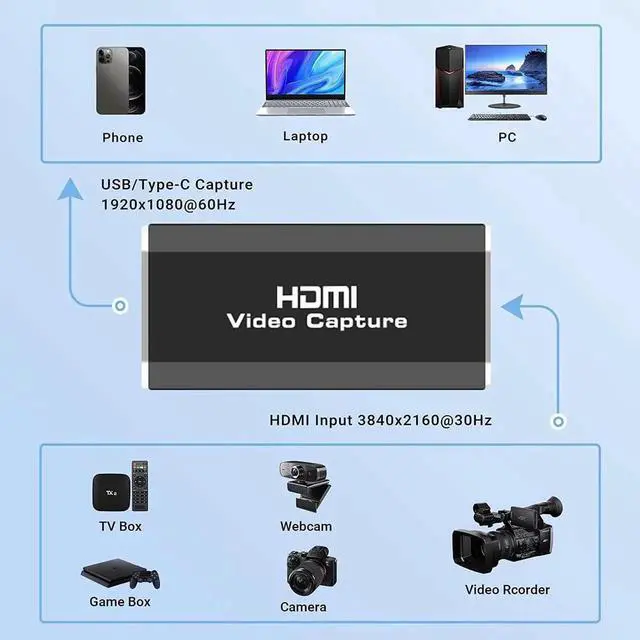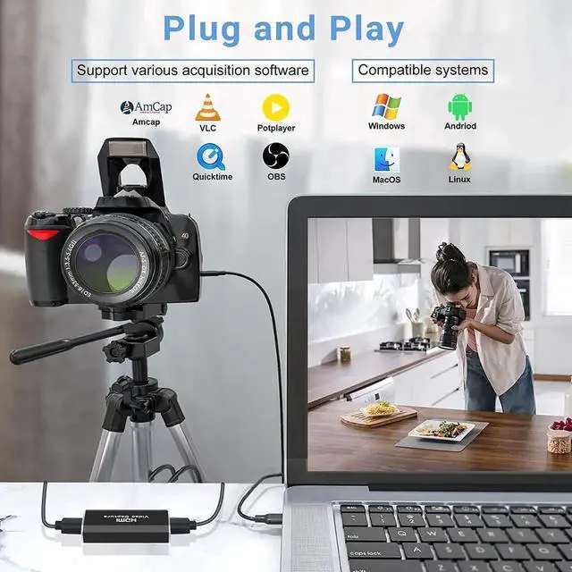 Plug and play: The 4K HDMI capture card is easy to use and no need to download drivers. Without an external power supply, compact and portable, easy to carry.