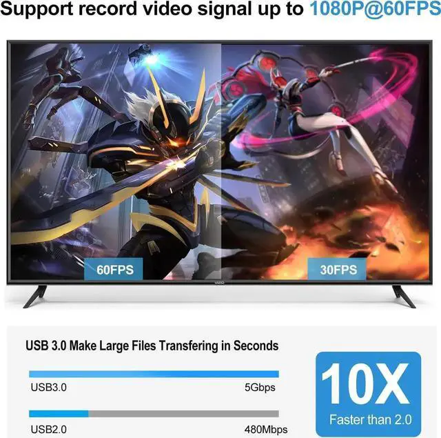 • 1080P With 60FPS,Support HDCP: The HD video capture card can support HDCP 1080P with 60FPS, it is very suitable to use it for game live streaming.