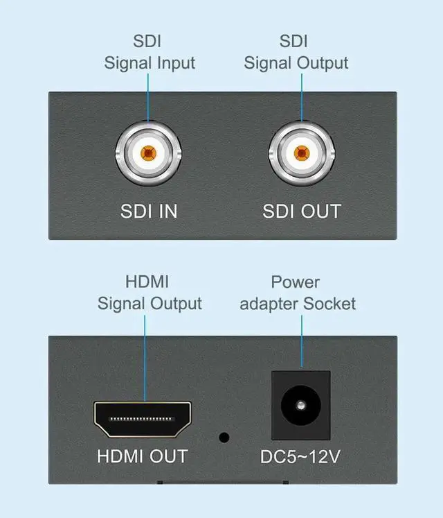 SDI to HDMI Converter Designed for SDI to HDMI Converter allows you easily display your work on common HDMI displays. The loop-through design also allows you to view the original SDI content on an SDI monitor simultaneous with the HDMI display. This converter supports bit rates up to 2.970 Gbps and supports SD-SDI, HD-SDI, and 3G-SDI video signals