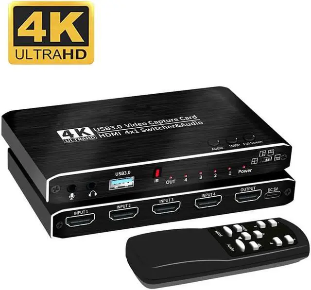 4K Ultra Game Capture Card: The 4x1 video capture card supports 4K@30fps pass through for HDMI 1.4 input and output. The USB 3.0 output is maximum to 1080@60fps, the max HDMI input and output is up 4K@30Hz. four HDMI input interfaces,which can be inserted in to HDMI video sources individually or at the same time,without mutual influence,video capture is very smooth and no delay.