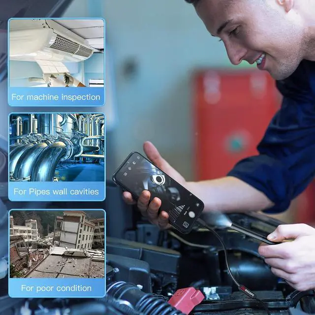 Multipurpose Gadget for Every Task: Endoscope is suitable for various scenes, such as inside the car or around the engine, inside the pipe inspection, or the house inspection mold, and wiring. Built-in 6 LED lights with adjustable brightness, this pipe camera can also capture the best images even in the dim areas