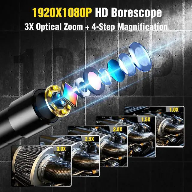 Upgraded 2nd CMOS ChipThe borescope adopts the 2nd CMOS chip that supports the highest recording frame rate, solving the problem of image delay; 360° image flipping and contrast adjustment can be performed during the inspection process. Widely used in fields such as automobile inspection, mechanical maintenance, home inspection, HVAC, plumbing, etc.