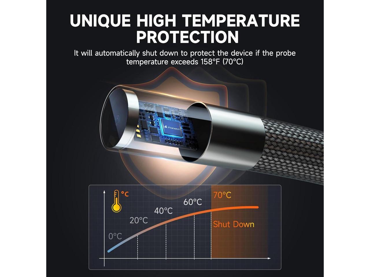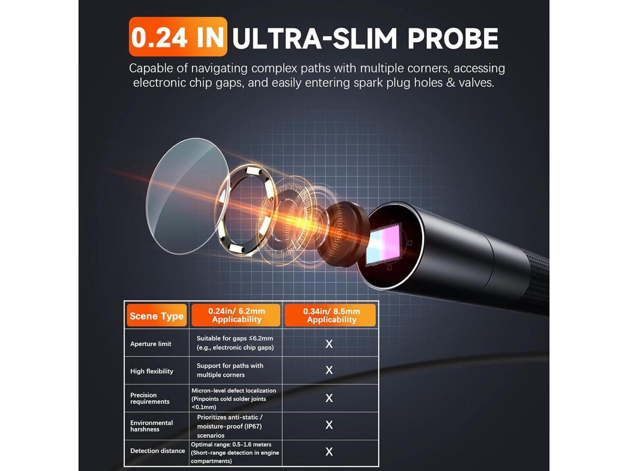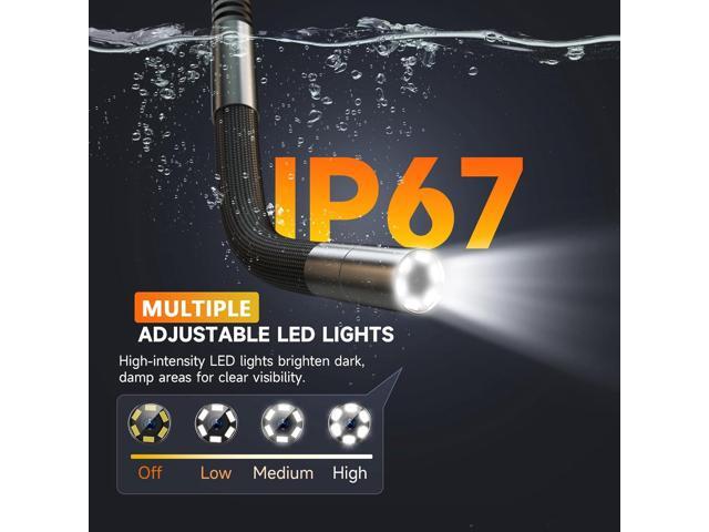 - [HD Camera + 6 Adjustable LEDs: Clear View in Any Lighting] Capture sharp visuals in full HDeven in complete darknesswith six brightness-adjustable LEDs and an IP67 waterproof lens. Perfect for engines, plumbing, or HVAC inspections.