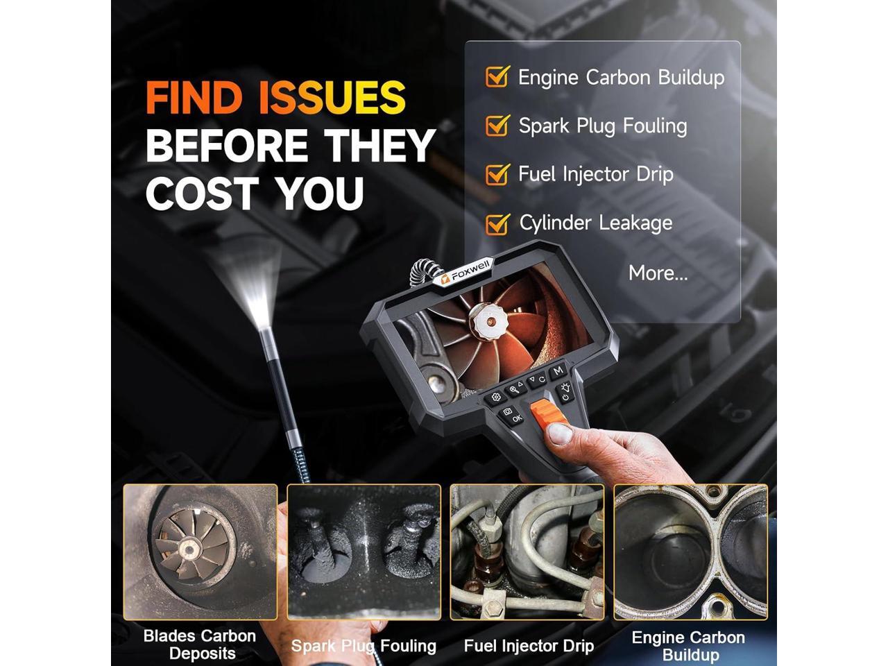FOXWELL Y400 2-Way Articulating Borescope Camera with Light, Industrial Endoscope Inspection Camera with Articulated Snake Cameras, HD Video Scope for Automotive Engine HVAC Inspection-5.25FT Cable