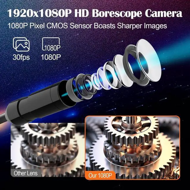HD CLEAR IMAGE QUALITY: Upgrade endoscope probe with advanced features for precise inspections; Its 8.5 mm / 0.33 inch integrated HD camera and 16.5 ft cord enable clear visualization in narrow spaces; Perfect for DIY or professional tasks, this high-performance borescope with HD clear 1080P resolution