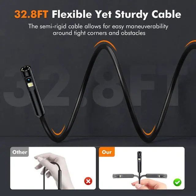 Semi-Rigid Cable and Easy to UseOur borescope camera with light is designed for user convenience. With its flexible and durable cable, you can easily navigate tight spaces and hard-to-reach areas. The user-friendly interface and plug play design make it simple to operate, even for beginners