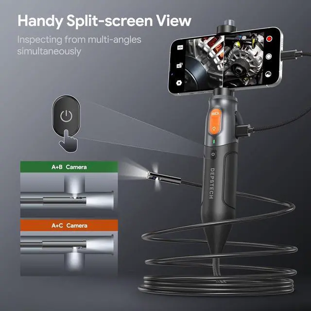 1080P HD Triple CamerasDEPSTECH Triple lens borescopes NTC52 is designed for hard to see projects. Thanks to the improved 2.0 megapixel CMOS sensor and the latest Bluart Tech, the borescope camera with light can produce sharp and vivid images and videos in 3 different viewing angles, help you locate invisible problems and troubleshoot them in a snap.