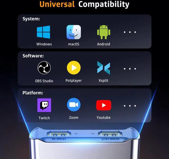 ![Alt view image 7 of 7 - 4K HDMI Capture Card [with Fixed USB 3.0 Cable, 4K Loop Out, No-Latency] 1080P 60FPS Cam Link Video/Audio Capture Device for Streaming, Game Recording, Compatible for Nintendo/PS5/xBox/PC-Gray](https://c1.neweggimages.com/productimage/nb640/C3H4D25122203H77C7A.jpg)