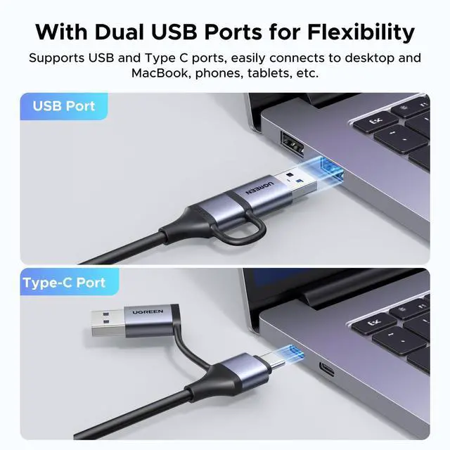 UGREEN 2K Video Capture Card USB 3.0 HDMI to USB-A/USB-C, 4K Input 1080P 60FPS Featuring both USB-A and USB-C Interfaces This UGREEN 2K 30FPS backward compatible 1080p 60FPS capture card utilizes a USB 3.0 high-speed transmission port to ensure ultra-low latency, while maintaining good performance even during long recording sessions. 4K@30Hz input + 2K@30Hz output resolution brings two advantages: high input resolution preserves original video quality after easy editing; 2K output achieves the best balance between clarity and consistency. Durable USB Capture Card The aluminum alloy casing easily dissipates heat and is lightweight while effectively shielding against EMI, ensuring stable signal transmission. Wide Compatibility Smartphones laptops tablets DSLR cameras Windows 11/10/8.1/7 MacOS Linux Switch Switch 2 PS4/PS4 Pro/PS5 Xbox Series X Meta Quest 3/2 iPad laptop Kindly Note: PS4/PS4 Pro/PS5 needs to turn off the HDCP protocol to work properly Plug & Play Driver-Free Enjoy a smooth experience out of the box, with no driver installation required. Unlike others, this USB capture card comes with a cable that is compatible with both USB-A and USB-C ( two ports are connected with a non-slip cable). High-speed Anti-interference The built-in cable features 26AWG (2C) + 30AWG (1P) tinned copper conductors, ensuring excellent conductivity and corrosion resistance, enhancing durability, and reducing signal loss