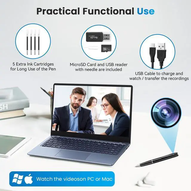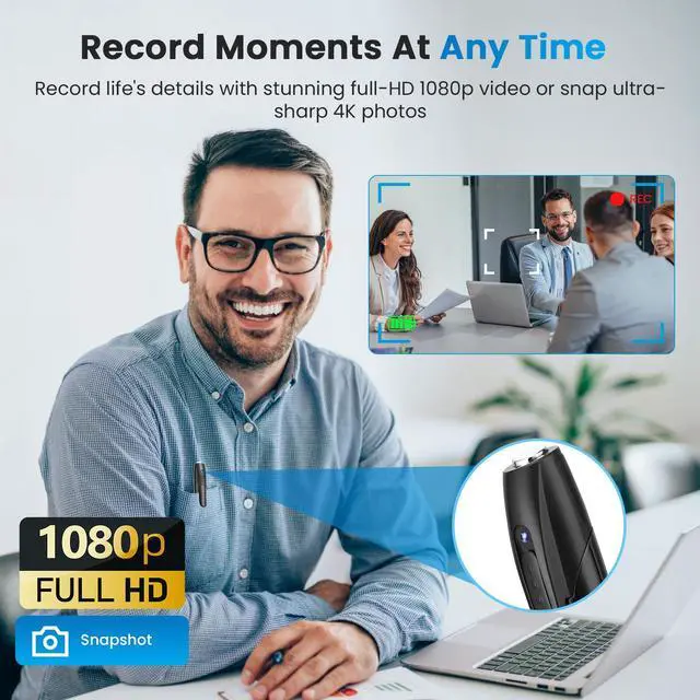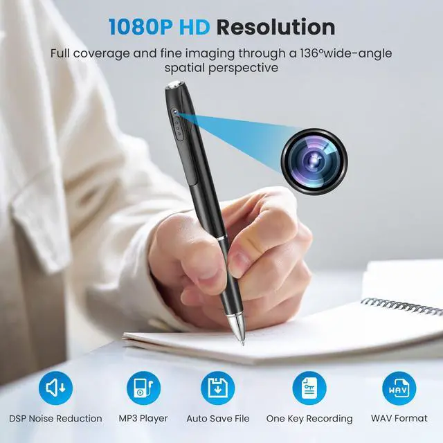 1080P Full HD Camera: Sleek, pen-sized design allows you to effortlessly capture 1080P HD videos or photos with a single click, anytime, anywhere.