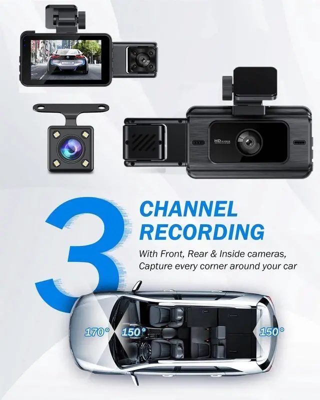 This dash cam supports memory card of 32GB-256GB. A free 32GB card is included in the package.