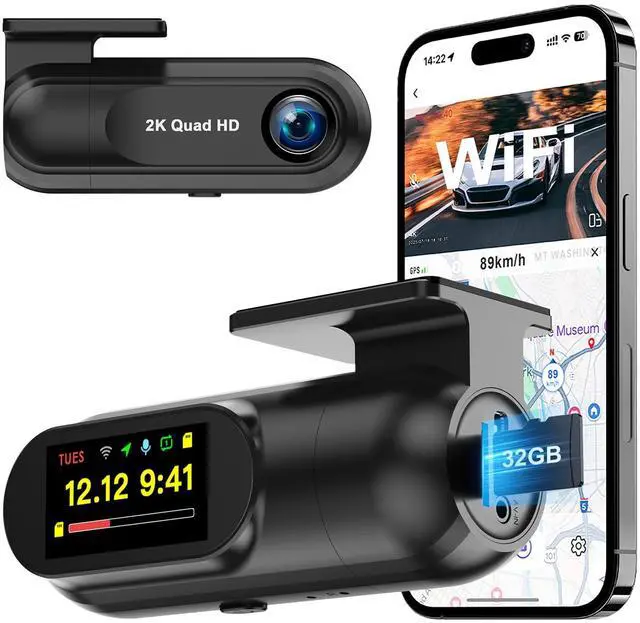 2K Dash Cam Front Dash Camera for Cars with 32GB Card, WiFi Mini Car Camera Dashcam with App