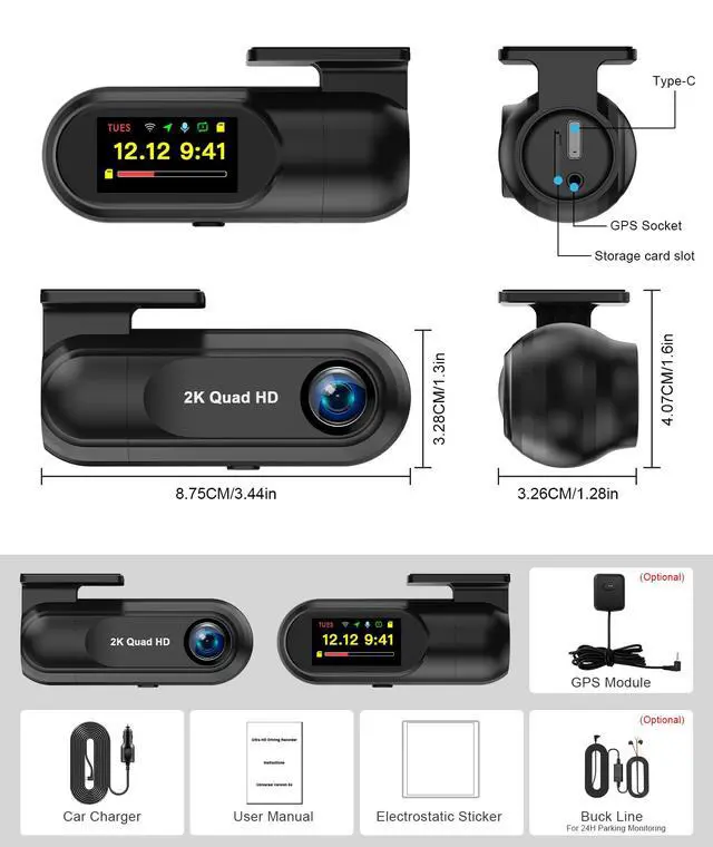 2K Front Camera Dash CamThis dash cam front camera supports resolution up to 2K on front camera. It built-in recording systems, the dash cam front camera lens with high resolutions to ensure that dashcam can capture every road signs in detail and record every beautiful moments of your traveling