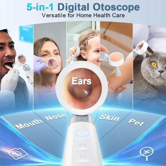 The Aspoven Digital Otoscope is designed to make ear inspection and earwax removal safer, easier, and more effective for the whole family. Featuring a built-in 1.38-inch IPS display, this otoscope allows you to view real-time images clearly without relying on a smartphone or external app. With a 1080P HD camera and 2MP CMOS sensor, every detail inside the ear canal is visible. The slim 3.9mm lens, combined with soft silicone tips, ensures a comfortable and safe experience for adults, children, cats, and dogs. Four adjustable LED lights and 4X magnification help improve visibility, even in low-light conditions. The 90-degree foldable head design offers greater flexibility, making it easier to inspect hard-to-reach areas. Built-in photo storage allows you to save up to 300 images, while support for a TF card (up to 128GB) enables video recording for long-term monitoring or sharing with professionals. Powered by a 2000mAh rechargeable battery, this otoscope provides up to 8 hours of continuous use on a single charge. Whether for routine ear care, family health checks, or pet grooming, the Aspoven Digital Otoscope is a practical and thoughtful tool for everyday use.