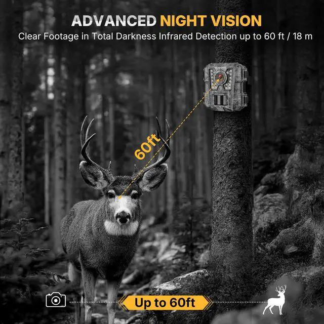 Easy to install and use: This game camera is easy to operate and install. Simply mount the camera using the included mounting strap with the capture area at a distance of 3-4 feet. (You can adjust the deer camera height according to the animal height you want to capture).