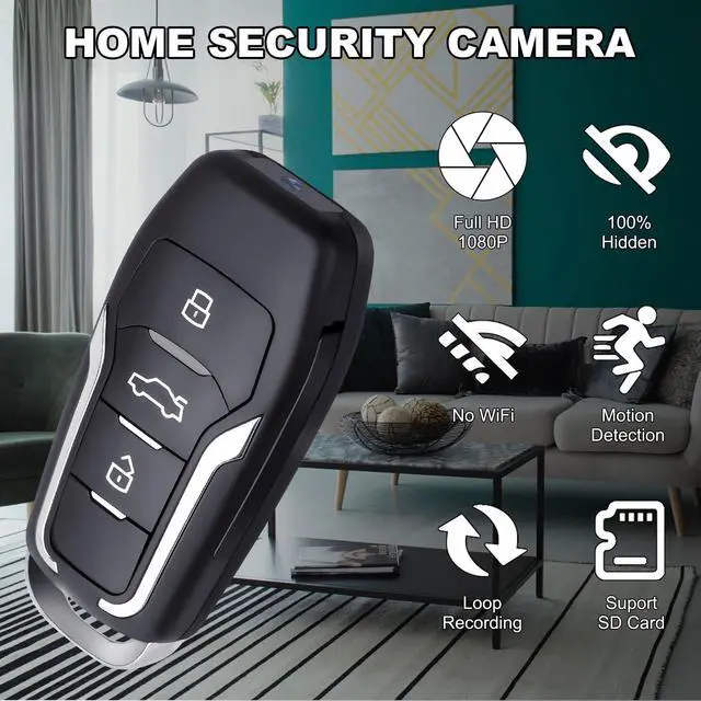 1080P HD Mini Video Recorder, Key Fob Design with Motion Detection, 64GB Storage & USB Cable for Home Monitoring