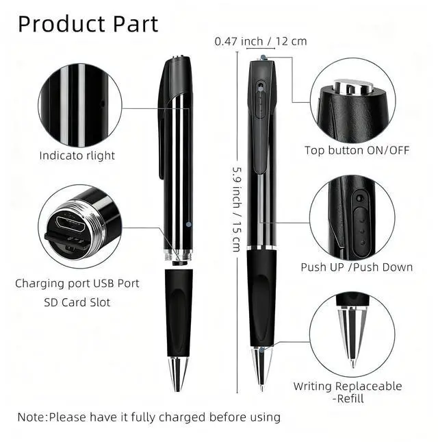 1. 2025 UpgradeCovert Design & One-Button Operation Experience ultimate discretion with our pen-shaped camera that looks and functions like a real pen. The 2025 upgrade features a refined one-button start function. Simply click to begin recording instantlyno complex settings. This discreet body camera is your reliable partner for business meetings, evidence collection, and confidential scenarios, ensuring you stay covert and confident